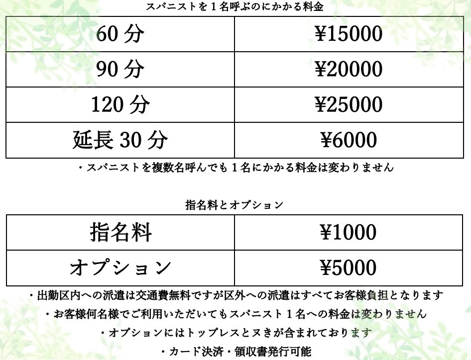・お客様が何名様でもスパニストは1名から呼ぶことができます